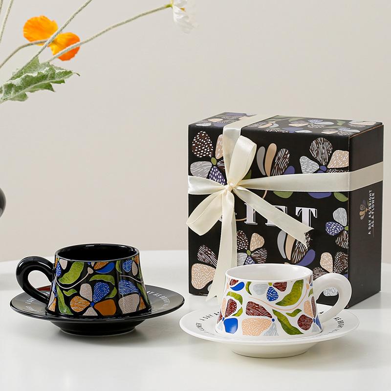 Leichter Luxus Retro Kaffeetassenset Keramiktasse Leichter Luxus Hoher Wert Becher Büro Wasserbecher Geschenkset