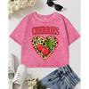 Liebe Leopardenmuster Kirschen Druck Damen Gewaschenes Crop T-Shirt Sommer Baumwoll T-Shirt Kleidung Slim Streetwear