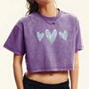 Silbernes Diamantenmuster Liebesdruck Gewaschenes T-Shirt Damen Retro Mode T-Shirts O-Ausschnitt Coole Kleidung Kurzarm