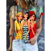 Sommer Damen Rundhals T-Shirt Outdoor Mode Lässig Kurzarm 3D Cartoon Druckmuster Übergroße Damenbekleidung