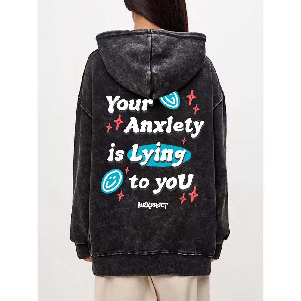 Übergroße Damen-Wasch-Hoodies Ihre Angst lügt Sie an Prints Pullover Warm Tasche Baumwoll-Hoodie Kleidung