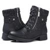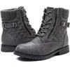 Damenmode Stiefeletten mit seitlichem Reißverschluss, niedrigem Absatz, rutschfestem, besticktem Karomuster, bequemer Strick-Schnürung, Ganzjahres-Tragekomfort Western-Stiefeletten