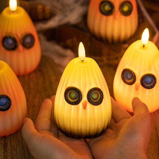 Herbst Eule Flammenlose Kerze LED Nachtlicht Batteriebetrieben Flackerndes Kerzenlicht Halloween Weihnachten Heimdeko