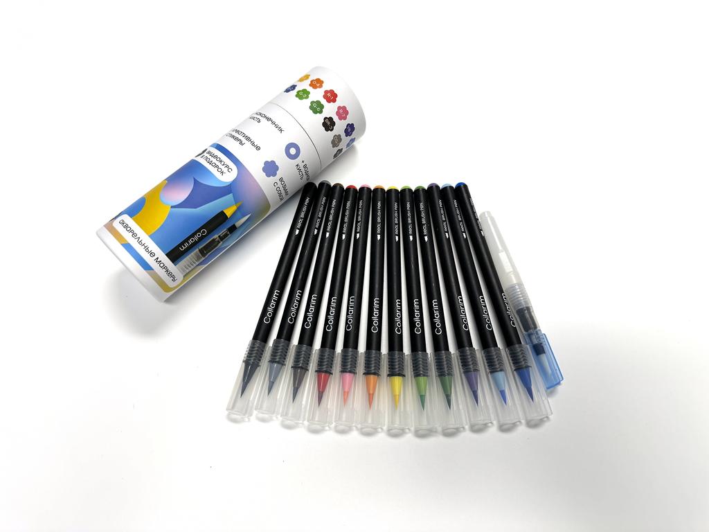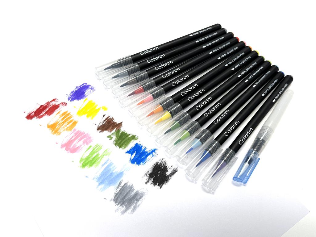 12 Farben Aquarell Pinselstifte Set - Flexible Spitze, Inklusive Wasserpinsel & Reiseetui