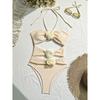 Einfarbige 3D-Blumen Neckholder Rückenfreie Bademode Sexy Einteiliger Badeanzug Damen Bade- Schwimmanzug Tragen Ausgeschnittene Bikinis