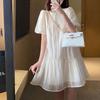 Koreanisches Kurzarm-Midikleid Damenbekleidung Lässig Rundhalsausschnitt Sommer Dünn Mode Falten Gespleißt Pendeln Einfarbig Kleider