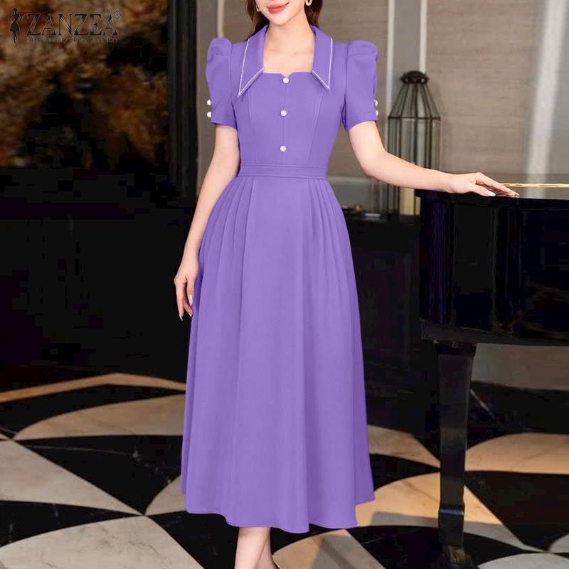 ZANZEA Damen Quadratkragen Lässig Kurzarm Elegantes Kleid