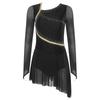 Damen Lyrisches Tanzkleid Durchsichtiges Netz Lange Ärmel Rückenfrei Strass Asymmetrischer Rock Eiskunstlaufkleid