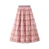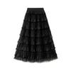Damenrock, modisch, drapiertes Netzgewebe, großer Saum, mittellanger Rock, Maskenkostüme