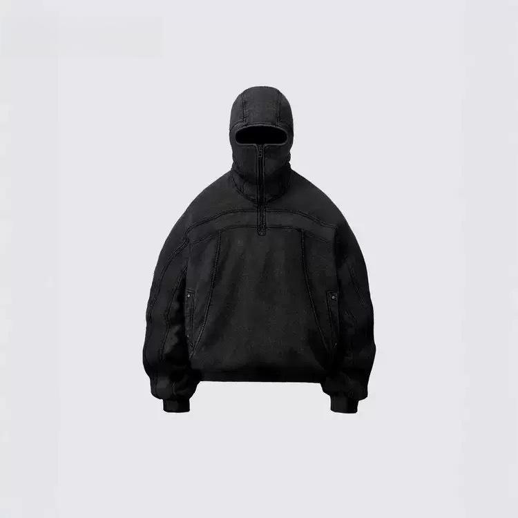 ZYLLO Classic Sturmhauben-Hoodie Herren Verwaschenes Grau Ninja Pullover Sweatshirt Hip Hop Splicing Y2k Vintage Winter Streetwear Partner-Oberteile