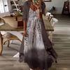 Women's Summer Casual Fashion Chiffon Coat V Neck Printed Camisole Two-Piece Dress