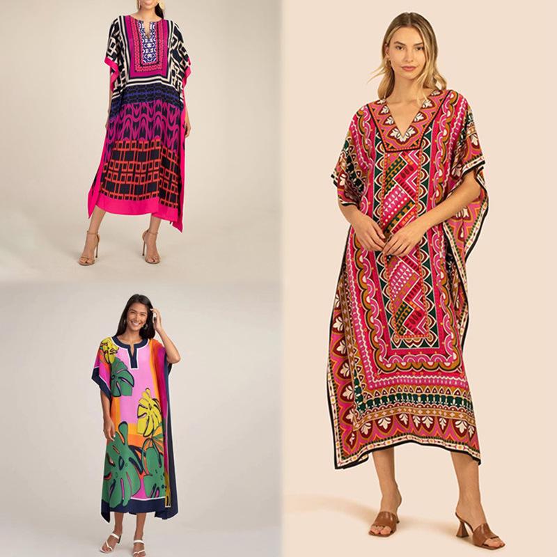 Europäischer & Amerikanischer Urlaubs-Strandüberwurf: Langer Morgenmantel mit Positionierungsdruck Badeanzug Damenkleid.