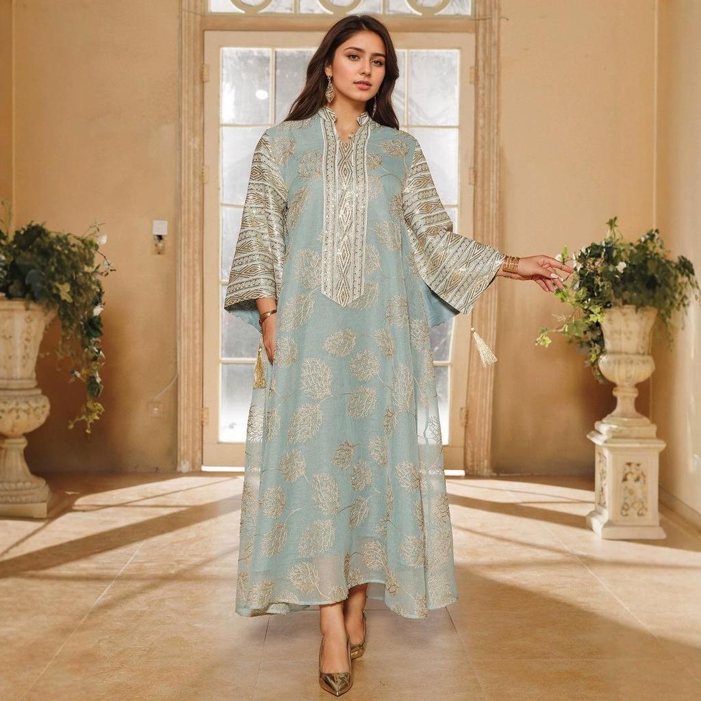 Spring/Summer Tassel Leaf Embroidered Muslim Long Dress - Elegant & Fashionable Cover-up Robe