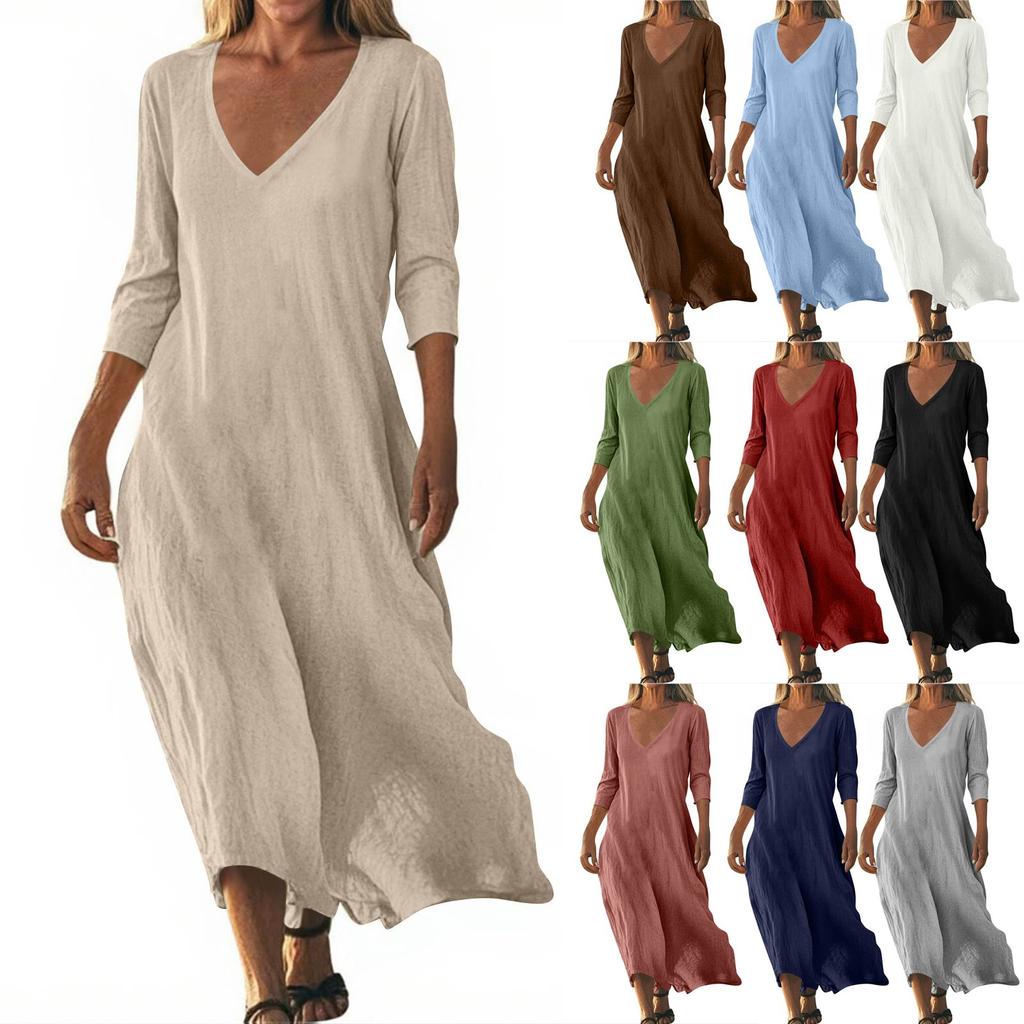 Lässiges Sommerkleid mit Print, 3/4-Ärmeln, Ausschnitt, locker, Strandkleid