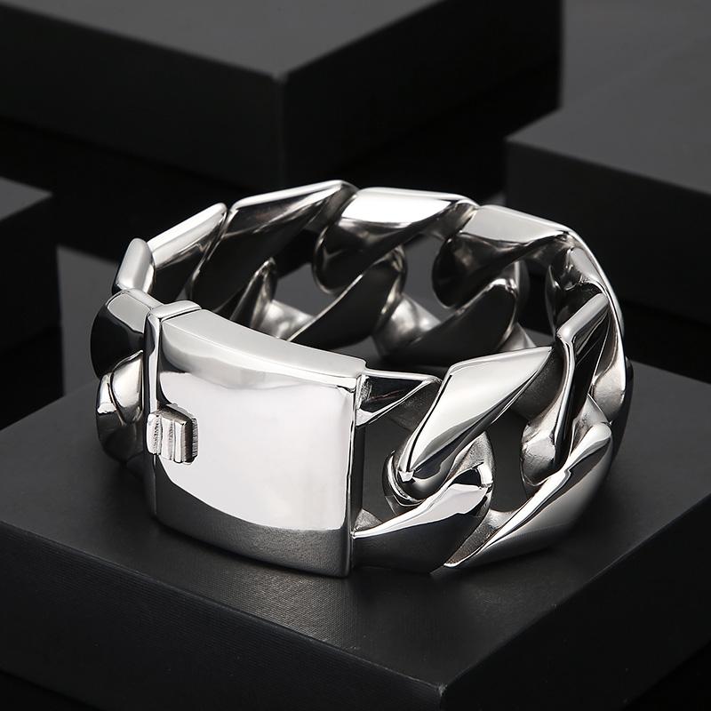 Leichtes kubanisches Armband Leniency für Herren Punk 31MM Edelstahl poliertes Accessoire herrschaftlicher Charme Partyschmuck