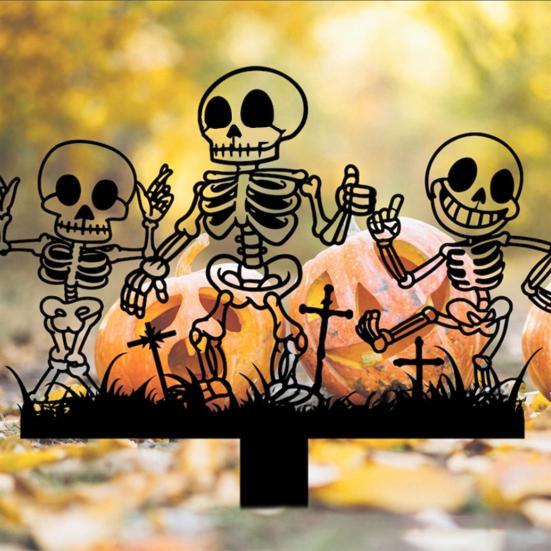 Halloween Gartenstecker Metallkunst Fliegende Hexe Schild Skelett Zombie Kinder Stecker für Outdoor Hofdekoration Einzugsgeschenk