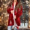 Damenmode, lässig, Weihnachtsdruck, mittellanger Cardigan-Jackenmantel