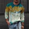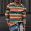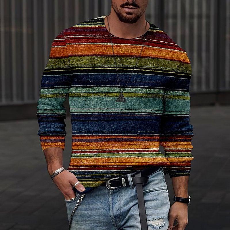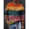Rundhals 3D-bedrucktes Batik-Streifenmuster Top Modische lässige langärmelige Herren-T-Shirts