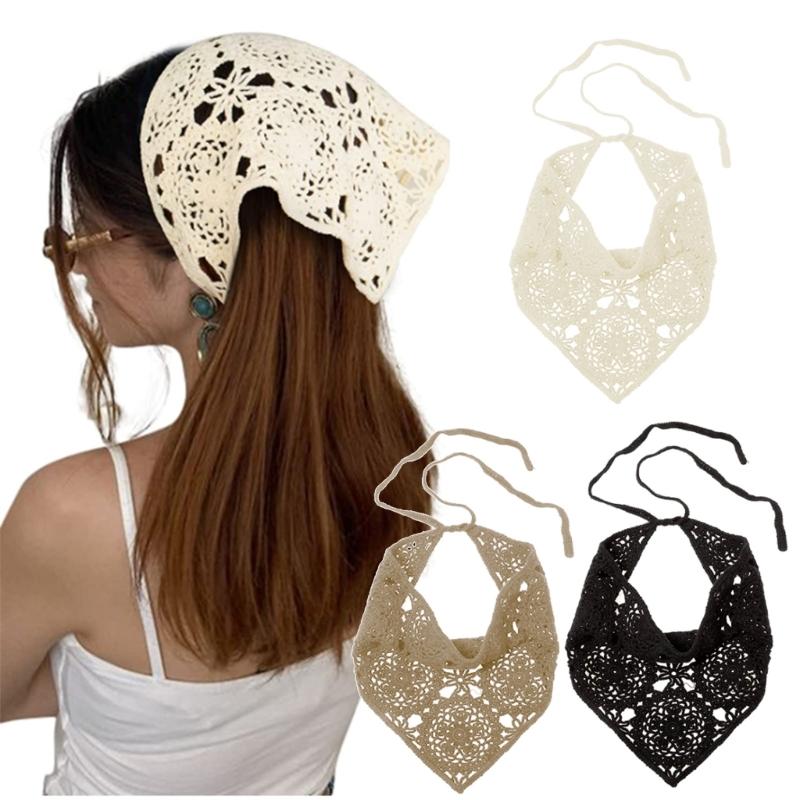 1 Stück gehäkeltes Haar-Bandana-Kopftuch (3 Farbe zur Auswahl)