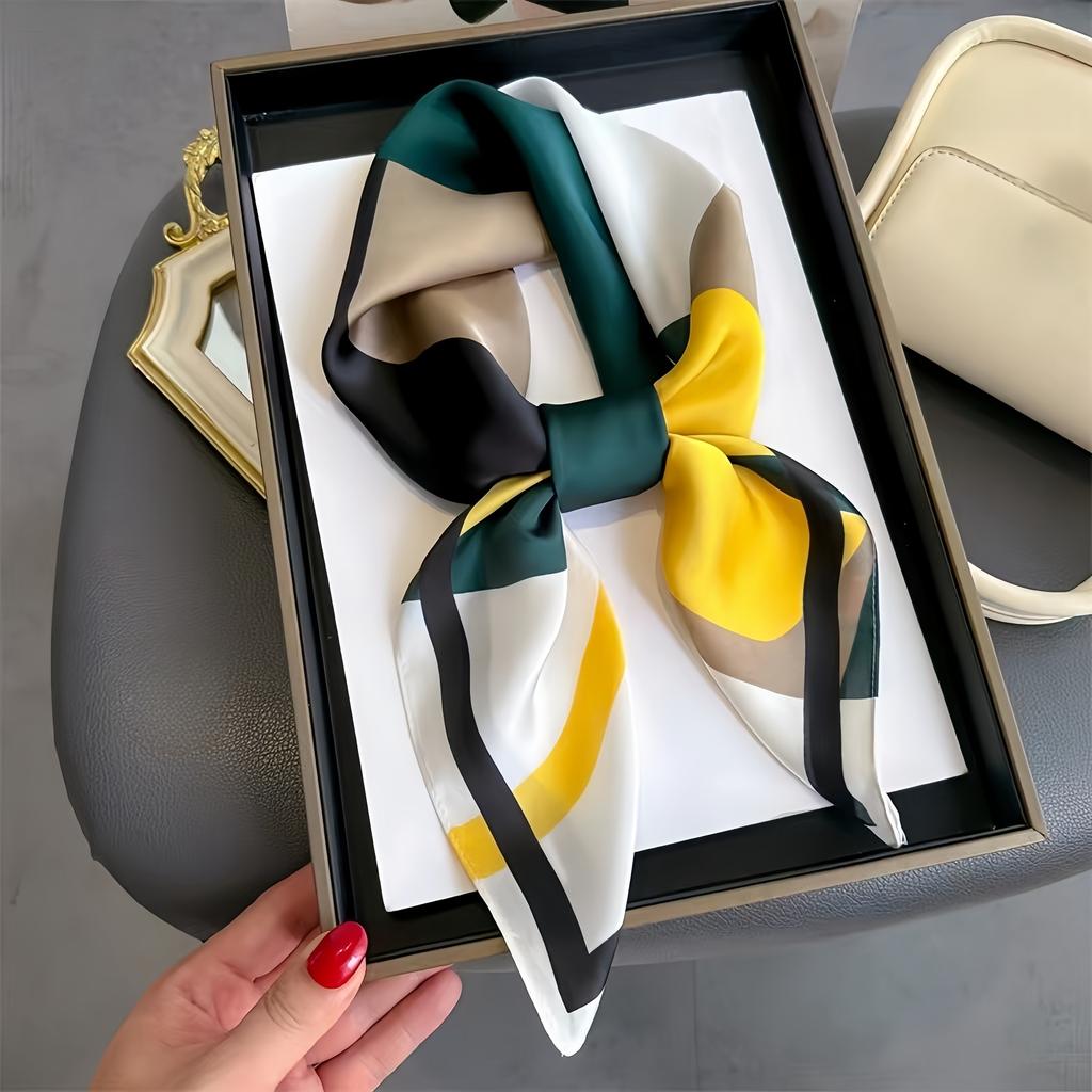 Eleganter Geometrischer Satin-Quadratischer Schal Damen Weich und Seidig Mode Halstuch Leichtes Bandana Kopftuch Stola Haaraccessoire