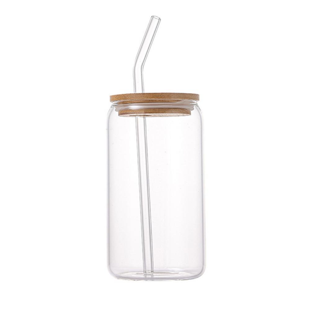 Bambusdeckel Matcha-Glas mit Strohhalm Kaffeetasse Mason Jars für Cocktail Whiskey Milch Saft Cola