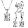 925 Sterlingsilber Elegante Schmucksets Ring Ohrringe Halskette für Damen Rechteck Geometrie Zirkon Hochzeitsaccessoires