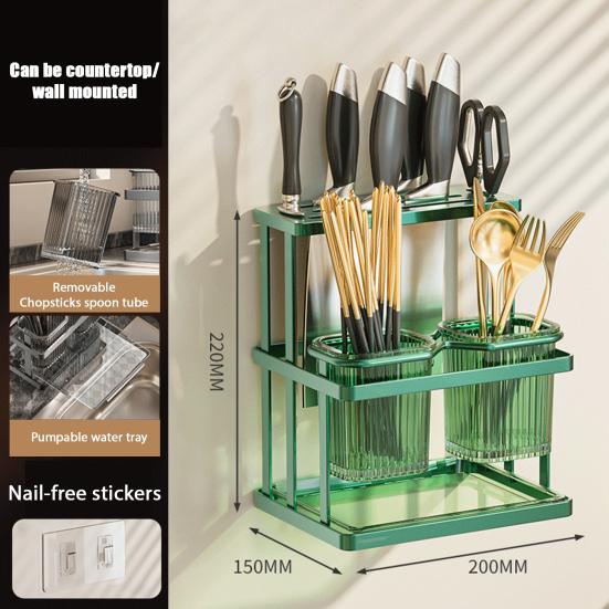 Mit zwei Fächern ist dieses Gestell darauf zugeschnitten, die Klassifizierung und Aufbewahrung von Küchenutensilien zu vereinfachen und so mühelos die Küchenorganisation und Effizienz zu verbessern.