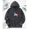 Kunstschrift Los Angeles Print Gewaschene Damen-Hoodies Übergroßer Allround-Hoodie Lässiges Lockeres Oberteil Baumwolle Mehrfarbig Unisex