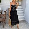 Damen Sommer A-Linien Rock Lässig Urlaub Spleißen Hohe Taille Trägerkleid