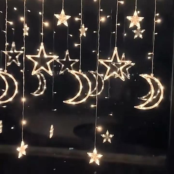 3.5M Solar Moon Star Curtain Lights Waterproof 8 Modes LED Fairy String Lamp for Christmas Party Garden Decor Decor for Room