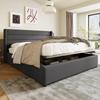 Polsterbett 140x200cm, Hydraulisch Doppelbett, Lattenrost, Bettkasten, Verstellbares Kopfteil, Samt, Grau, ohne Matratze