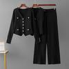 Schlank geschnittene Hose mit weitem Bein Pullover Dreiteiliges Damen Herbst Neu Weste Gestrickte Strickjacke Set