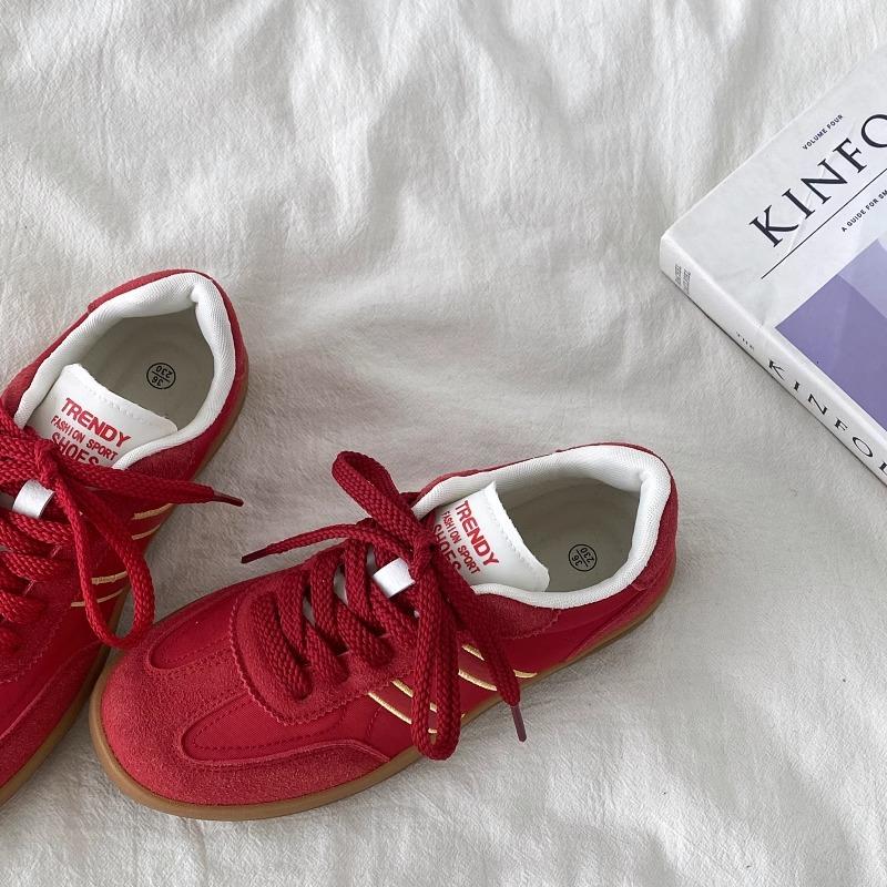 2025 Frühling neue rote deutsche Trainingsschuhe Damen leichte flachsohlige Retro Hongkong-Stil vielseitige lässige Forrest Gump Board-Schuhe