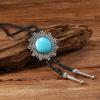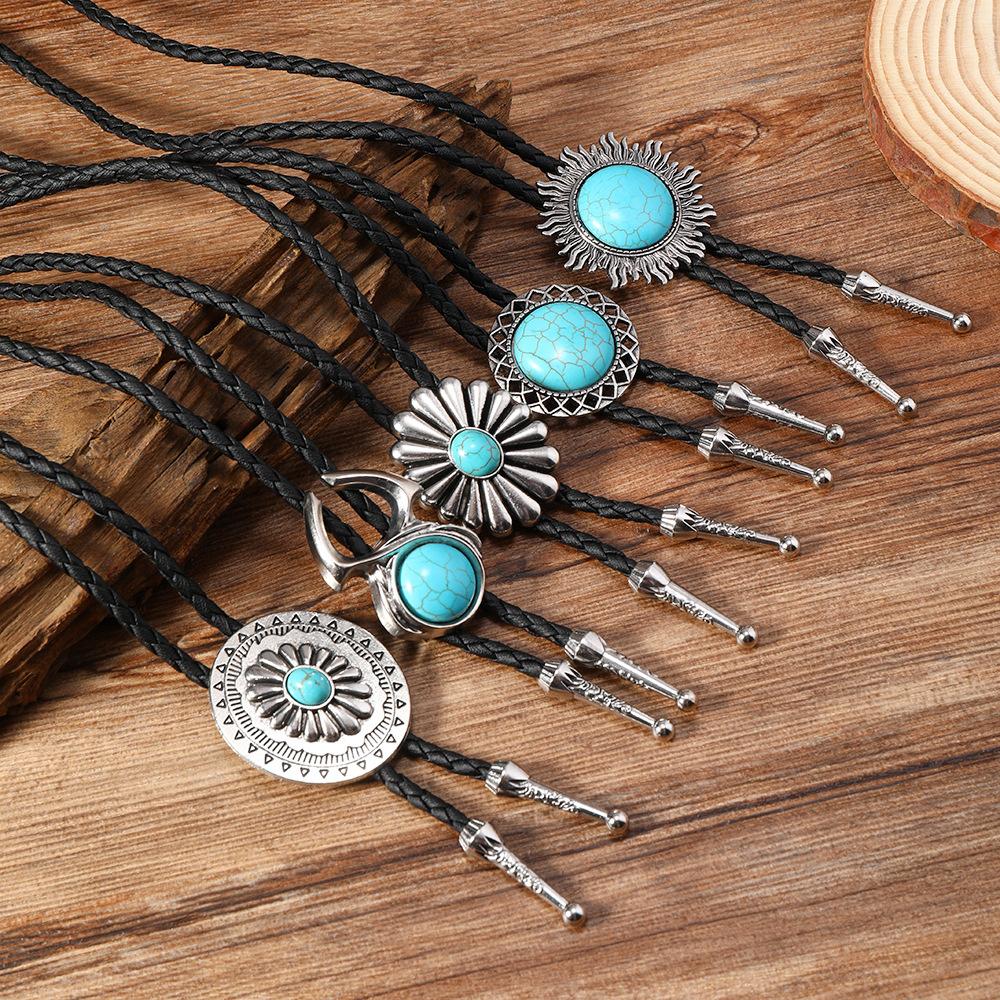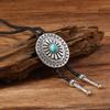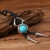 Inlaid Turquoise Wax Rope Necklace Relief Retro Round Pendant Niche Original Oil Drip Jewelry