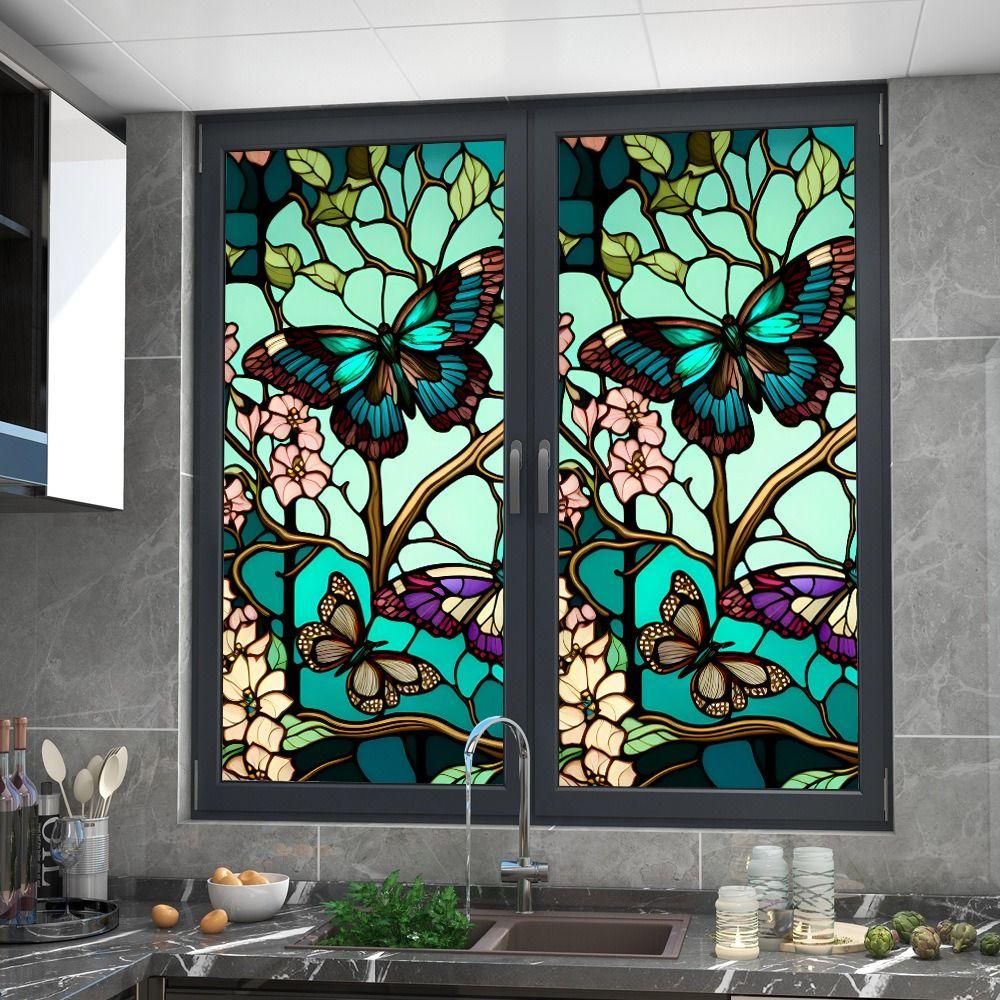 Selbstklebender Blumen Vogel Fensterglasaufkleber DIY Fenster Sichtschutzfolie Aufkleber Fenster