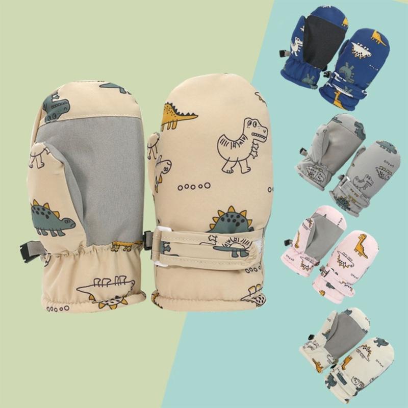 Verstellbare Schneefäustlinge Wasserdichte Schneehandschuhe Cartoon Winddichte Skihandschuhe Schnelltrocknendes Design Handschuhe für Kleinkinder