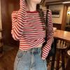Gestreiftes Langarm-T-Shirt für Damen Frühling Herbst Damenbekleidung Kurz Lässig Innenschicht Unterhemd Tops