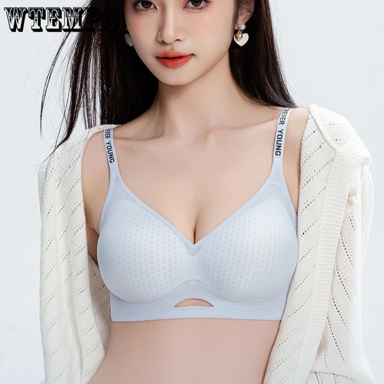 Thin Ice Silk Seamless Lingerie Women's Gathering Bra Thin Letter Shoulder Strap Breathable Bra Push Up Bra