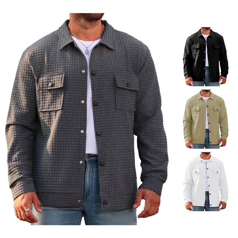 Fall 2025 Outerwear, Men's Casual Top, Jacquard, Small Checkered, Loose Fit Jacket, Shirt, Suitable for Autumn and Winter Wear