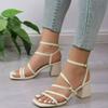 Luxussandalen Damenmode Sommer Damen High Heels Einfache eckige Zehenpartie Offene Zehenpartie Absatzsandalen Riemchen Damenschuhe Größe 36-43