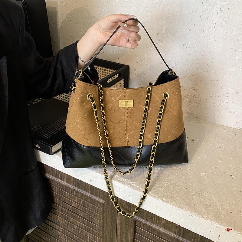 New high-end fashion embroidery thread contrasting color tote bag portable shoulder crossbody trendy women's bag