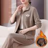 Lässige Dicke 2-teilige Sets Damen Reißverschluss Langarm Sweatshirt Tops Conjuntos Winter Warm Samtgefüttert Gerade Hosen Trainingsanzug