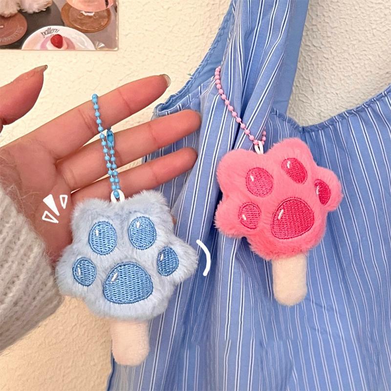 Kawaii Katzenpfote Eis am Stiel Schlüsselanhänger Kreatives Süßes Plüschtier Schlüsselanhänger Mädchenhafte Tasche Anhänger Rucksack Hängende Dekoration Schöne Geschenke