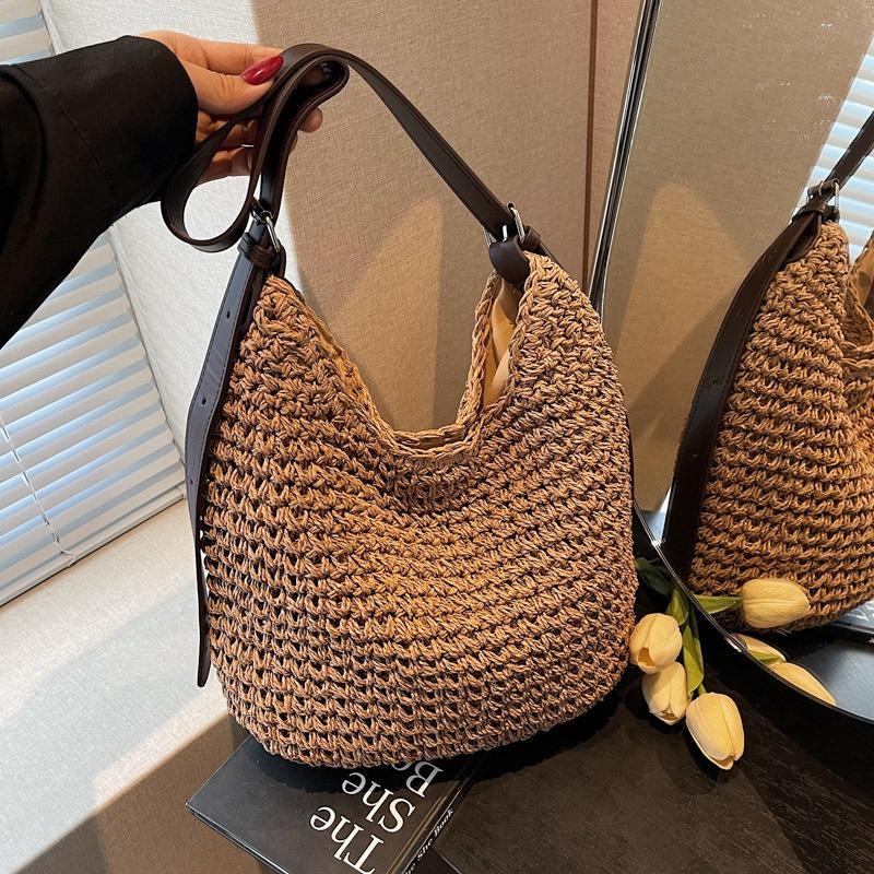 Mode gestreifte gewebte Tasche Strandtasche aus Stroh für Damen neue Mode Pendler-Umhängetasche