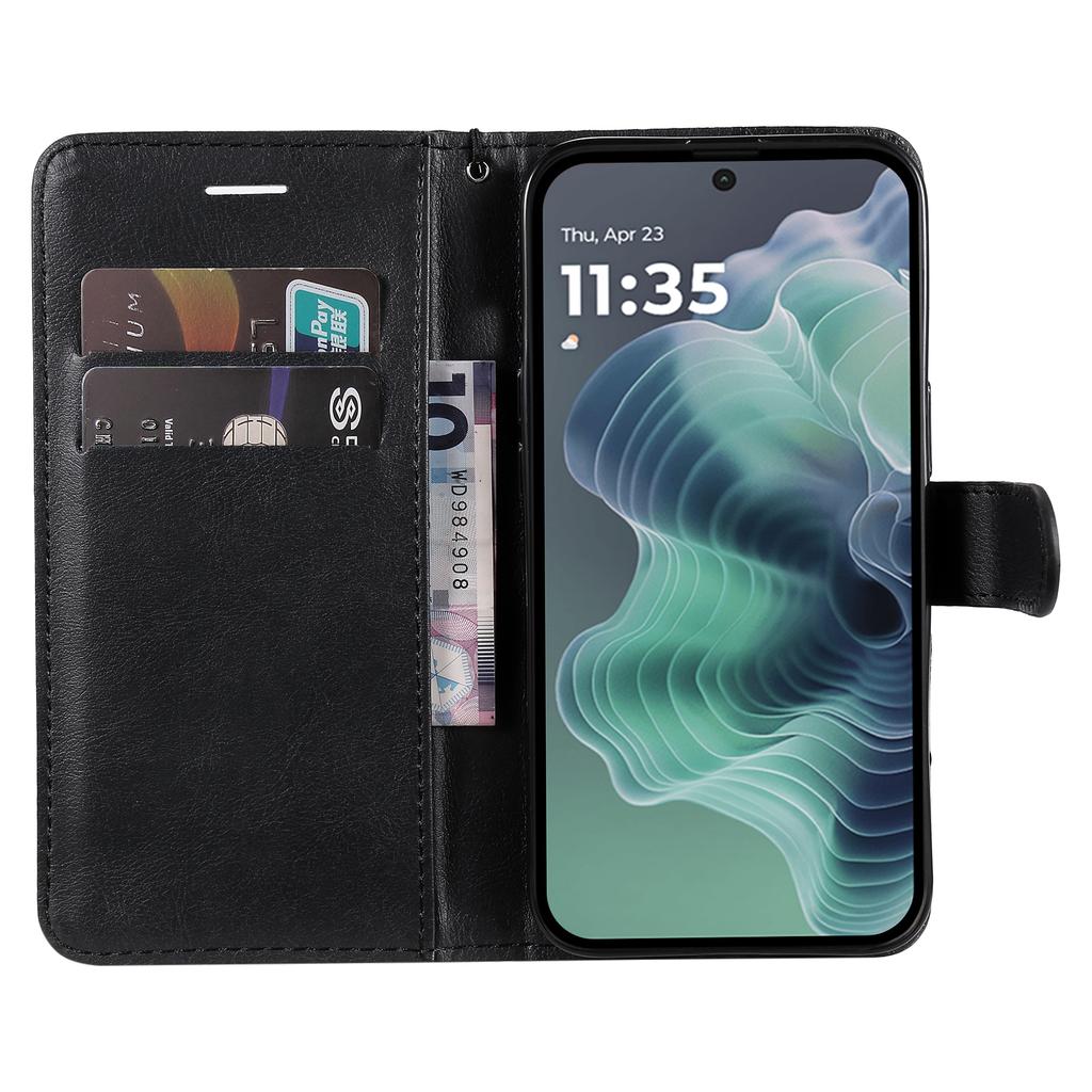 Für Motorola Moto G35 5G Leder-Brieftaschenhülle mit Riemen einfarbig Handy-Ständer-Abdeckung