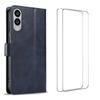 For Samsung Galaxy S25 Edge Case with 2Pcs Tempered Glass WANLONFENG WN Series Calf Texture Leather Phone Cover Big Cutouts