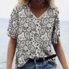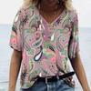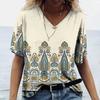 Summer V-neck 3D Vintage Ethnic Printed Top Fashionable Casual Bohemian Style Short Sleeved Women's T-shirts