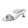 Silberne temperamentvolle quadratisch-köpfige Zehensandalen für Damen-Sommerkleidung mit Röcken, wunderschöne hochhackige Strass-Cool-Slipper für Damen