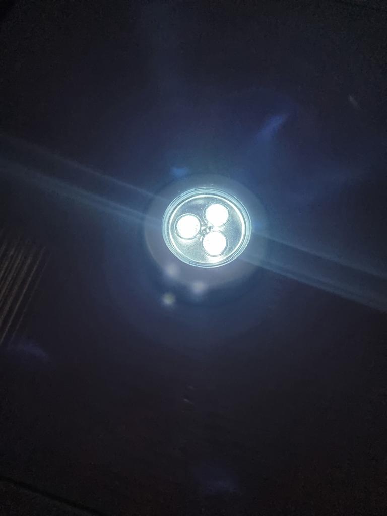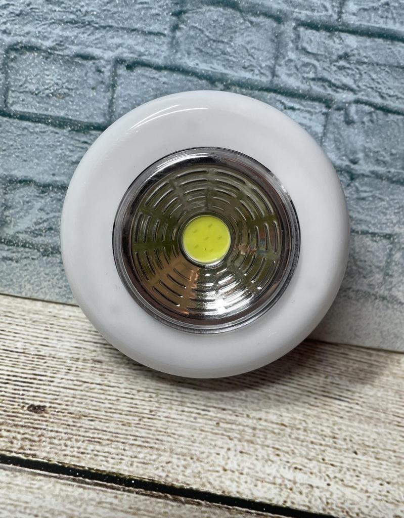 LED-Leuchte - ist für die Beleuchtung von Orten konzipiert, an denen es schwierig ist, Kabel zu verlegen.. Die Leuchte kann überall im Haus verwendet werden. Es werden keine Kabel benötigt, die Leuchte wird von einem eingebauten Akku gespeist.. Kein Bohren erforderlich - das Gerät wird durch Magnete gehalten, die mit doppelseitigem Klebeband (im Lieferumfang enthalten) befestigt werden.. Kann an Wänden und Decken befestigt werden. Dank des eingebauten Bewegungssensors leuchtet er bei Berührung der Oberfläche auf, wenn er sich im Arbeitsbereich befindet, und erlischt bei erneuter Berührung.. Mattiertes Glas des Nachtlichts streut das Licht angenehm.. Größe: Durchmesser 6,8 cm, Dicke 2,5 cm. Stromversorgung: 3 Batterien erforderlich (nicht im Lieferumfang enthalten)