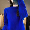 Damen Pullover mit halbhohem Halsausschnitt, dick, einfarbig, lässig, locker und schlank machend